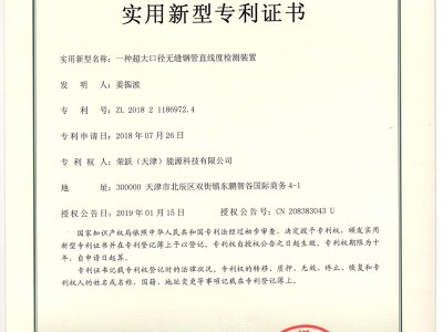 本實(shí)用新型公開了一種超大口徑無縫鋼管直線度檢測裝置,包括檢測通道、基座、傳動連接環(huán)、檢測安裝盤,所述檢測通道內(nèi)中間設(shè)置有鋼管,所述基座上端設(shè)置有所述檢測通道,所述檢測通道一側(cè)設(shè)置有導(dǎo)向圈,所述導(dǎo)向圈一側(cè)設(shè)置有所述傳動連接環(huán),所述傳動連接環(huán)一側(cè)設(shè)置有齒圈,所述傳動連接環(huán)內(nèi)側(cè)設(shè)置有安裝板,所述安裝板內(nèi)側(cè)下端設(shè)置有旋轉(zhuǎn)軸,所述旋轉(zhuǎn)軸外側(cè)設(shè)置有滾輪。有益效果在于:本實(shí)用新型結(jié)構(gòu)簡單,功能實(shí)用,操作方便,當(dāng)鋼管有變形時,轉(zhuǎn)輪被帶動上下運(yùn)動,轉(zhuǎn)輪再帶動檢測桿擺動,角度傳感器檢測到擺動角度,能夠?qū)崿F(xiàn)自動檢測,測量的精度高,反應(yīng)時間快,該裝置測量的精度高,反應(yīng)時間快。